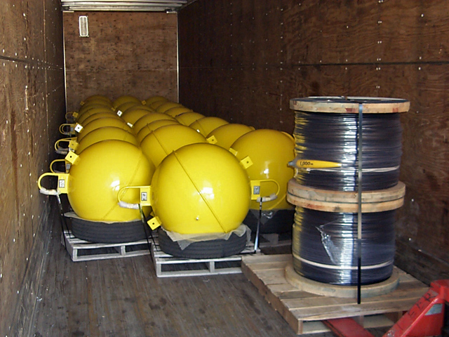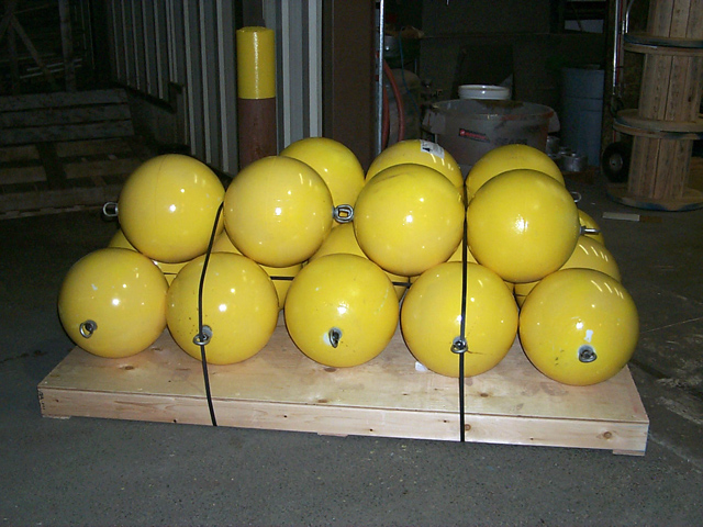 Mooring Systems, Inc. utilizes plastic commercial fishing floats for use in a variety of instrument mooring applications.