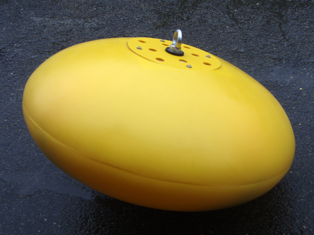 Mooring Systems, Inc. manufactures an ellipsoid-shaped subsurface buoy that provides a lower drag coefficient than traditional shaped spherical buoys.