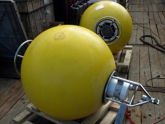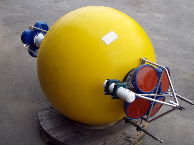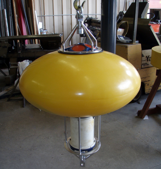 During mooring recovery operations, ellipsoid-shaped buoys provide excellent vertical position of beacons unlike spherical buoys with unbalanced instrument payloads that roll in ocean waves.