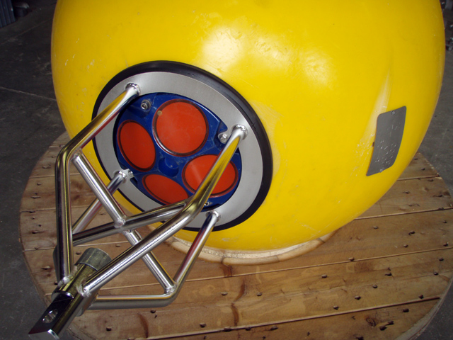 Mooring Systems, Inc. manufactures spherical shaped subsurface buoyancy for ADCP buoy applications with integral stainless steel instrument mounting frames, or with single strength members for use as primary or back-up mooring flotation.
